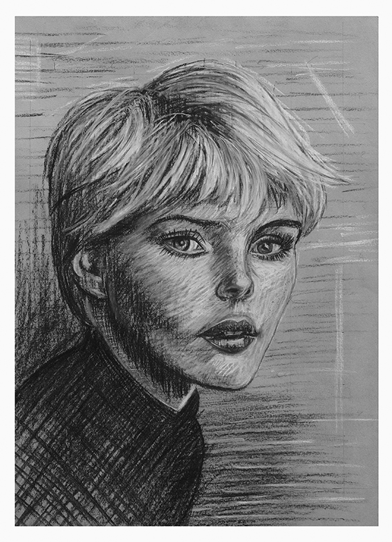 PORTRAITS PAINTED IN ACRYLIC AND COLLAGE Head Phones Lost Man in Charcoal Patrick Stewart Acrylic Self Portrait Charcoal Sketch on paper Pen and Ink Sketch Oil on Paper Sketch Zachary Quinto Look Cool Billie Eilish Morgan Freeman